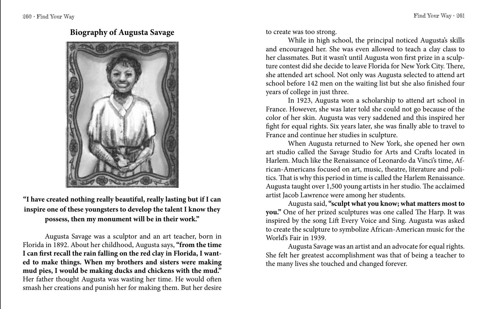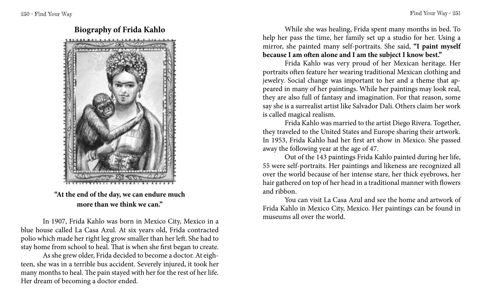 An important message I always want to share with young artists is embracing who you are and finding your "own way". I selected each of these artists for their amazing ability to overcome many hardships and blaze a trail that was uniquely their own. Such is the wish for all of my students and...for the readers of Find Your Way!