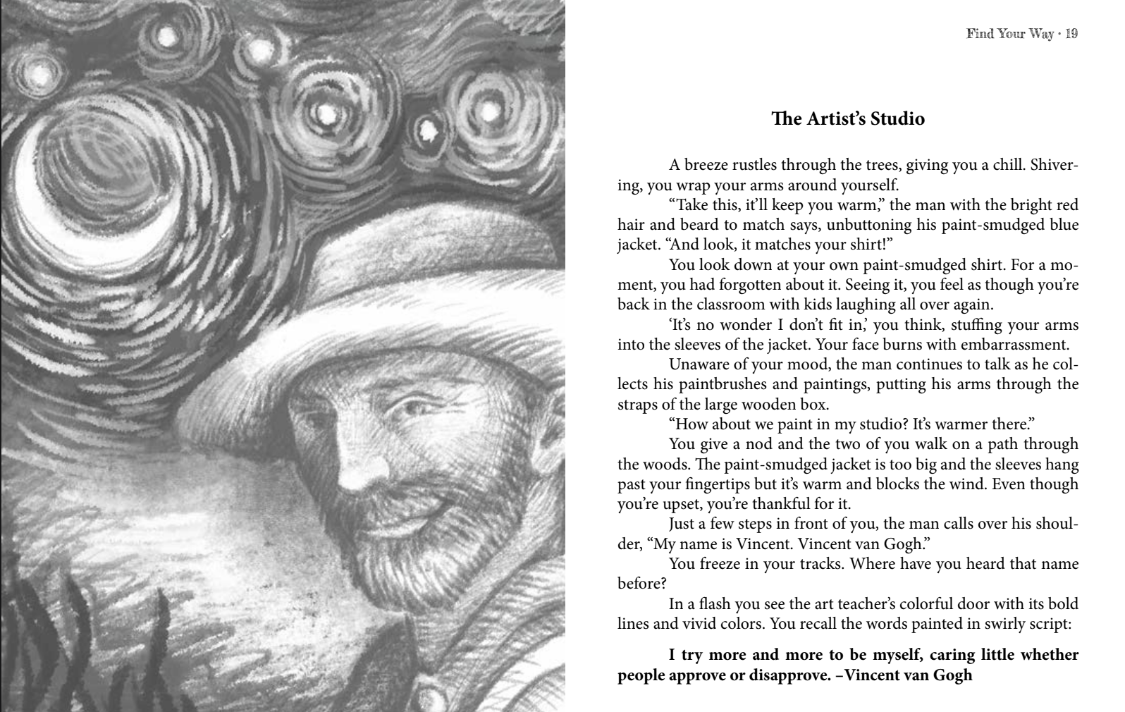 Each evening I researched the artists featured in this book and wrote tales of adventure and intrigue. The following day, I'd read the stories aloud to my students and not only did they love it but...they learned all about famous artists, creativity and finding their own way in the world.