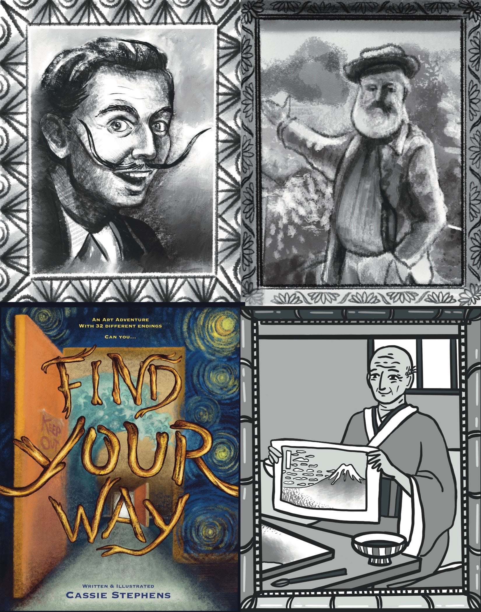 Written in short chapters, this book allows for the reader to decide which artistic adventure to go on with 32 different endings! Not only that but this book features biographies of each of the 7 artists featured as well as 7 art activities inspired by the artists!